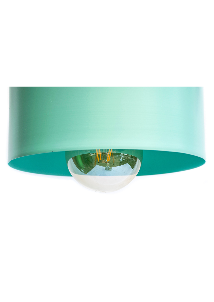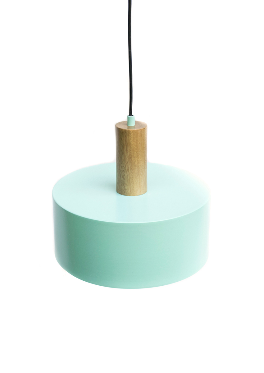 Pantalla en hierro con diferentes posibilidades de color y apliques en roble natural. Incluye plafón + Cable encauchetado color negro.